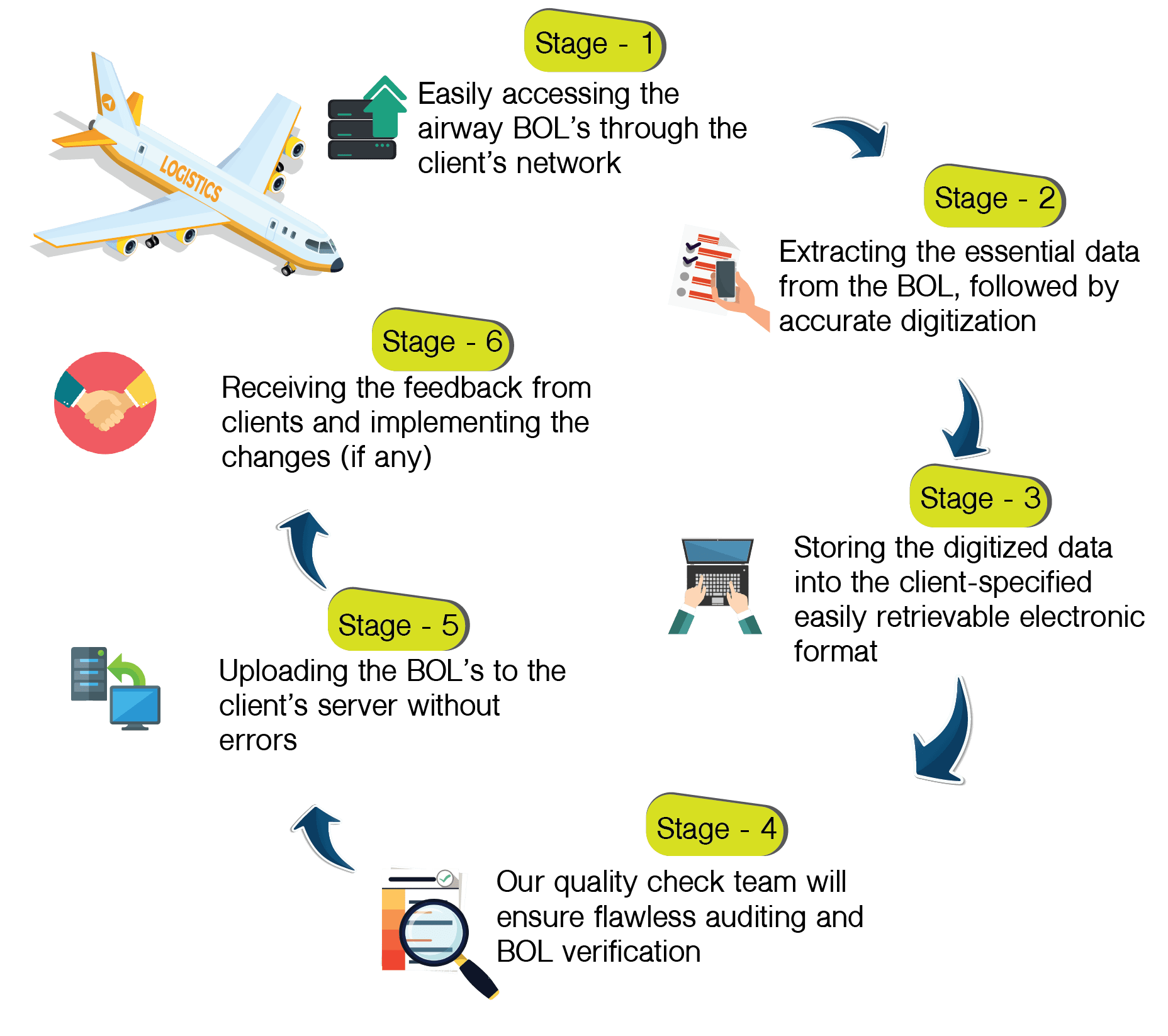 We follow a systematic process to complete the airway bill processing in a hassle-free manner and our team will ensure to deliver the desired result with less error and within a faster turnaround time.